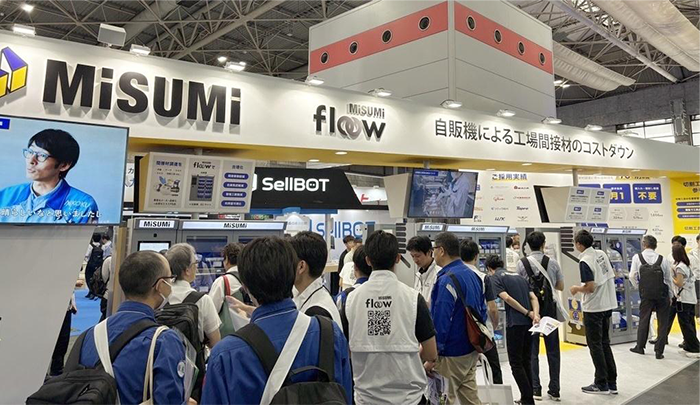 当社ブースでは、量産工場のお客さま向けに、間接材調達業務にかかる工数を約70%削減する、間接材トータルコストダウンサービス「MISUMI floow(フロー)」を展示します。会場では工場内に設置可能な自販機の実機展示と操作デモンストレーションを行い、実際の利用イメージをご体感いただけます。さらに、省スペースに設置でき、金型加工で使用される工具の利用シーンを想定した、新たな自販機モデルを初お披露目いたします。加えて、ミスミが提供する切削工具の新ラインアップも展示いたします。