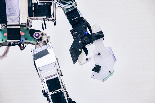常賀さん:長く使われていた機体で、フレームが歪んでいたり、一部のパーツは破損したりしていたので、その部分の修理・改善をしました。割れていた3Dプリンター製の肩部品は先輩の設計データをもとに新しく作りましたし、破断していた金属部品も新たに切削しました。製作時間が足りず、腰のフレームのように、歪んだままサーボのネジ穴と合っていない場所が残っている部分もあるのですが、ねじを新品で締め直したり、配線を新しくしたりといったメンテナンスは最低限行いました。