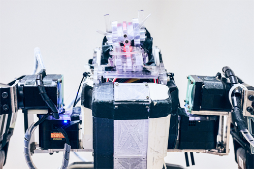 常賀さん:設計は自分が行いました。金属部品を使うと加工に時間がかかるので、同期の家と自宅にあった3Dプリンターをほぼ24時間稼働させて、17人分の部品と壊れたときの予備を作って組み立てました。人を集めてとにかく大会に出て、最悪、自分が研究や就活でROBO-ONEに出られなくなっても、「二足班」としてROBO-ONEに出続けられるような環境を作ろうと頑張りました。