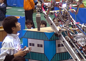 渡部さん:競技時間は毎年3分間なのですが、例年全国大会の上位は満点が当たり前で、時間勝負になります。今年の競技の目標時間を1分強と設定し、それを目指して製作しました。回転する部分はモーターを使用、前後や上下する動きはエアシリンダーを多用しました。また、時間短縮を図ると操縦ミスが多発したので、各セクションで動作する箇所を限定したり、シーケンス動作となるようにマイコンのプログラムを改良しました。あと、時間短縮のために各部位のスピードアップをしましたが、故障が多発したので1試合完了ごとのメンテナンス項目をリストにして整備担当が実施するようにしました。
